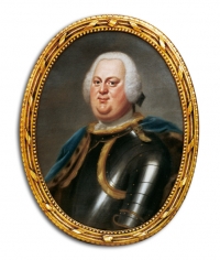 Malarz nieznany ,Portret pułkownika Liboriusa Conrada Diede, około 1735-1745 , olej, płótno, owal, 73,5 x 55 cm