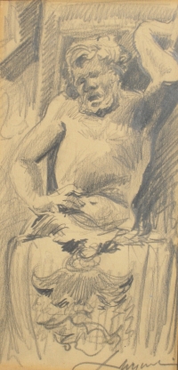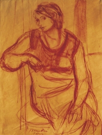 Zygmunt MENKES ,Szkic portretowy siedzącej kobiety, 1923-1935 , kredka, papier, 52 x 39,5 cm w świetle passe-partout