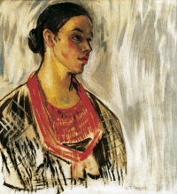 Tadeusz PRUSZKOWSKI ,Portret kobiety , olej, płótno, 71 x 64 cm