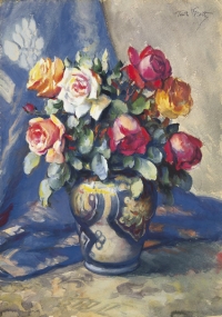 Teodor GROTT ,Kwiaty w wazonie, około 1930 , akwarela, papier, 49 x 34 cm