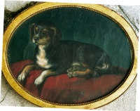 Malarz dziewiętnastowieczny ,Portret pieska, około 1850 , olej, płótno naklejone na drewno, owal 19,5 x 25 cm