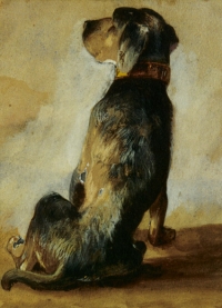 Aleksander CALAME ,Pies , akwarela, gwasz, papier, 20 x 14,5 cm