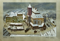 Ryszard PRAUSS ,Ratusz i rynek, 1944 , akwarela, gwasz, papier, 39 x 50,5 cm