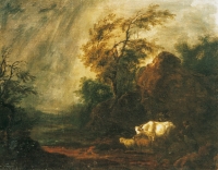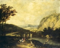 Malarz z kręgu Gaspara DUGETA /POUSSINA/ ,Pejzaż ze sztafażem, około 1670 , olej, płótno, 61 x 75 cm