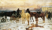Jan Erazm KOTOWSKI ,Koński targ, około 1920 , olej, płótno, 70 x 121 cm