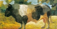 Kazimierz LASOCKI ,Byk, 1910 , olej, deska, 25 x 44 cm