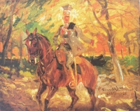 Ludwik GĘDŁEK ,Kozacy przeganiający konie , olej, deska, 38 x 58 cm