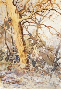Julian FAŁAT ,Pejzaż jesienny, 1908 , akwarela, gwasz, papier, 69,5 x 87,5 cm