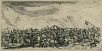 Jacques CALLOT ,Bitwa na lance , akwaforta wykonana igłą echoppe, papier żeberkowy francuski, płyta 47 x 94 mm