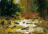 Alfred NICKISCH ,Leśny potok , olej, tektura, 54 x 72 cm