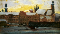 Otto Edward BORZEMSKI,Widok na Stare Miasto od Pragi, 1927 , olej, tektura, 9,3 x 15 cm