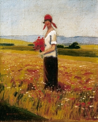 Otto Edward BORZEMSKI,Kobieta z naręczem maków , olej, płótno, 40,5 x 34,5 cm