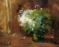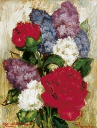 Józef MEHOFFER ,Bukiet kwiatów , olej, tektura, 34,5 x 26,5 cm