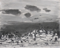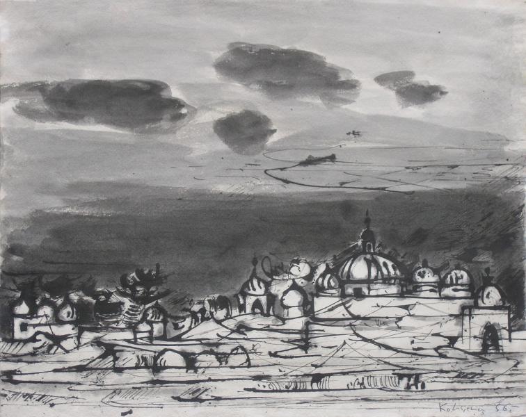 Tadeusz KULISIEWICZ ,Motyw wschodni, piórko, tusz, papier, 31 x 38,5 cm