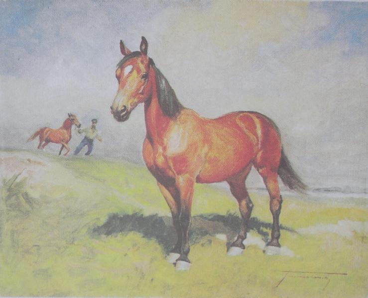 Antoni TRZESZCZKOWSKI ,Studium gniadego konia, około 1950 , olej, płótno, 16 x 32 cm