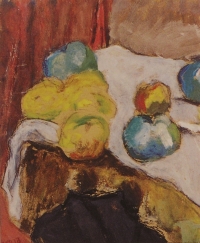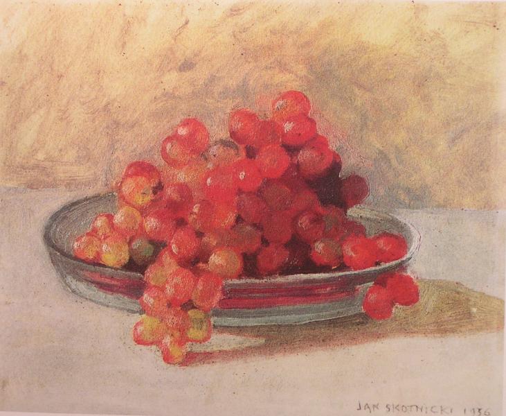 Jan SKOTNICKI ,Martwa natura z winogronami, 1956 , olej, tektura, 33 x 40 cm