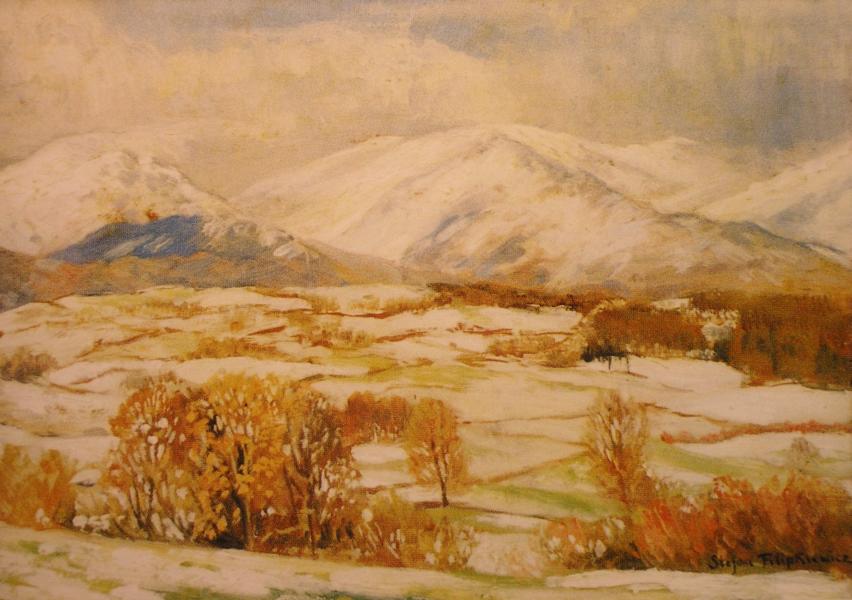 Stefan FILIPKIEWICZ ,Pejzaż zimowy, około 1930 , olej, deska, 27 x 38 cm