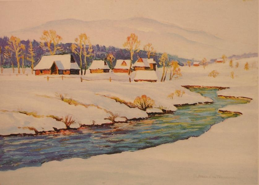 Pejzaż zimowy - motyw z przedgórza, około 1935