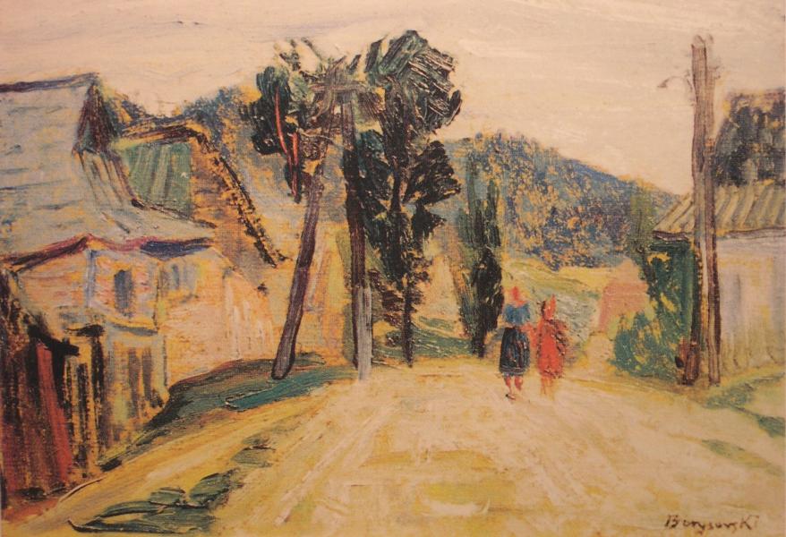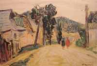 Stanisław BORYSOWSKI ,Droga przez wieś, około 1935 , olej, tektura, 24,6 x 33,3 cm