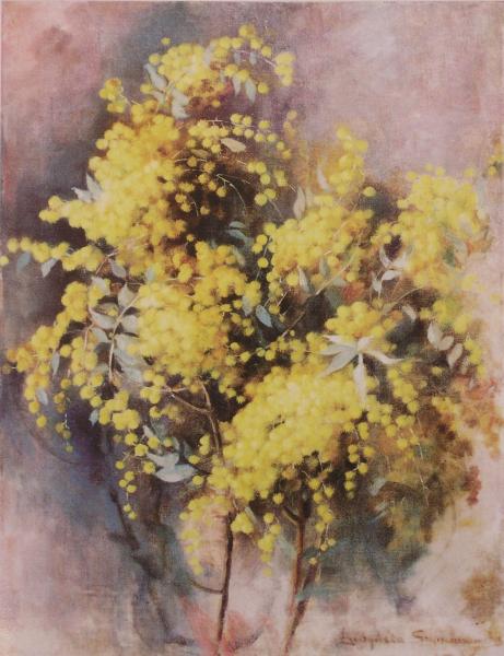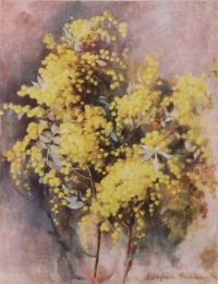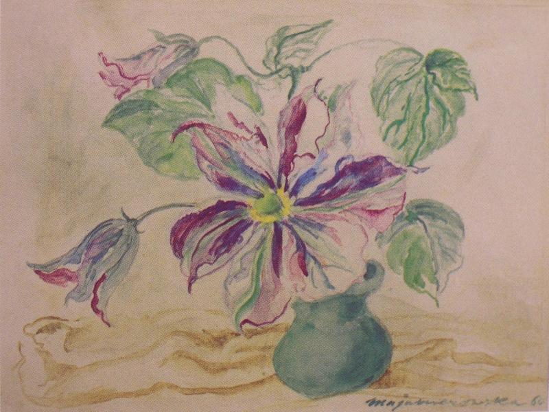 Maja BEREZOWSKA ,Gałązka kwitnącego klimatisu, 1960 , akwarela, papier, 23,5 x 31,5 cm w świetle passe-partout