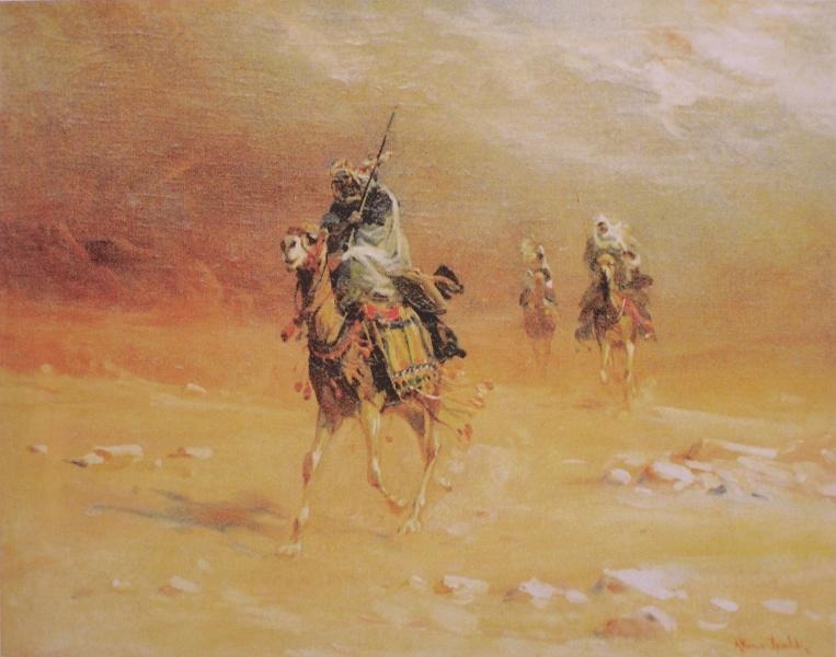 Alfred WIERUSZ-KOWALSKI ,Marokańscy jeźdźcy, około 1910 , olej, płótno, 50 x 64,5 cm