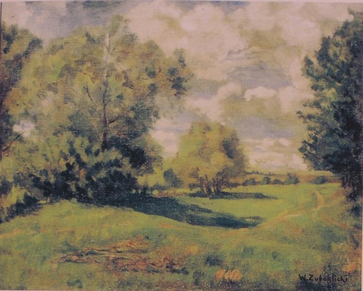Wacław ŻABOKLICKI (ZABOKLICKI) ,Pejzaż nizinny, około 1925 , olej, płótno, 40,5 x 50 cm