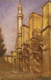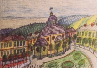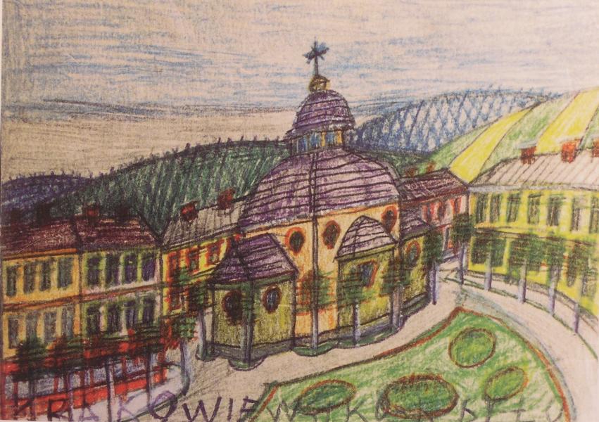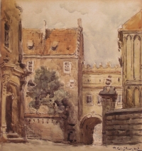 Tadeusz CIEŚLEWSKI (ojciec),Wejście na wzgórze wawelskie, około 1935 , akwarela, ołówek, papier, 29 x 27 cm