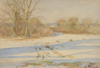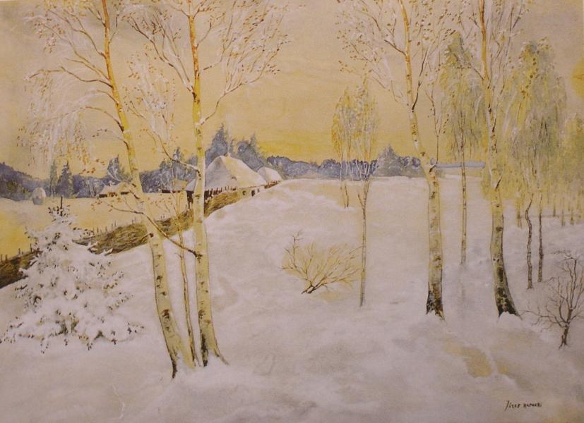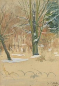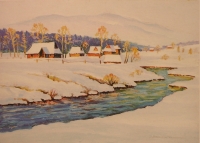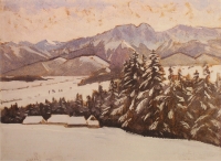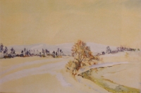 Stefan FILIPKIEWICZ ,Pejzaż zimowy - motyw z przedgórza, około 1935 , akwarela, gwasz, papier, 24,5 x 36 cm