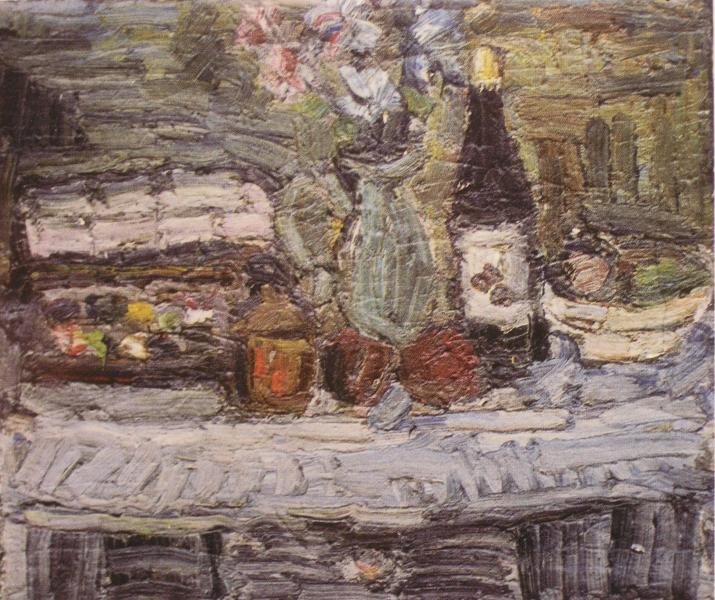 Jan CYBIS ,Martwa natura z farbami, około 1947-1950 , olej, płótno, 46 x 55 cm
