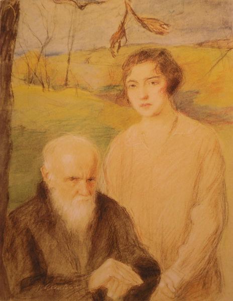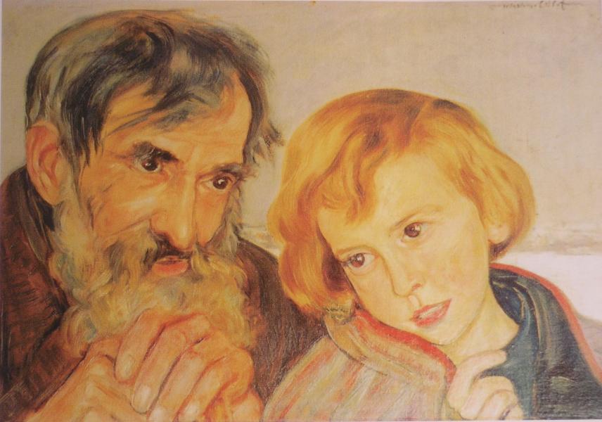 Teodor AXENTOWICZ ,Starość i młodość, około 1930 , pastel, papier, 62,5 x 49 cm