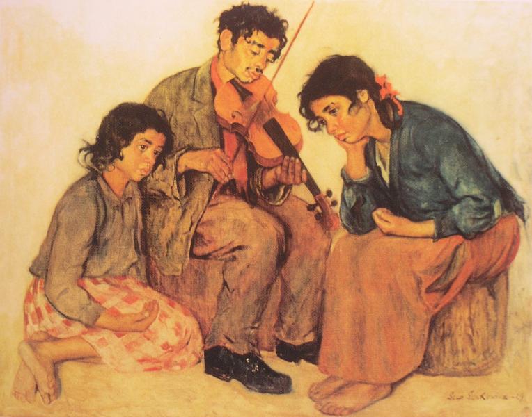 Chłopiec ze skrzypcami i dwie dziewczynki, 1929