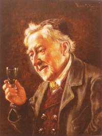 Oscar SCHMITT ,Starszy człowiek trzymający pucharek , olej, deska, 18 x 13,8 cm