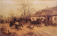 Ludwik GĘDŁEK ,Powrót z polowania, około 1880 , olej, deska, 37 x 58 cm
