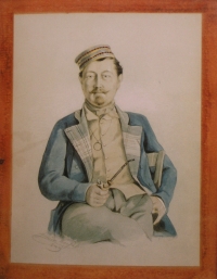 Juliusz KOSSAK ,Portret mężczyzny, 1849 , akwarela, złota farba, papier, 26,3 x 19,9 cm