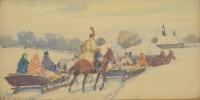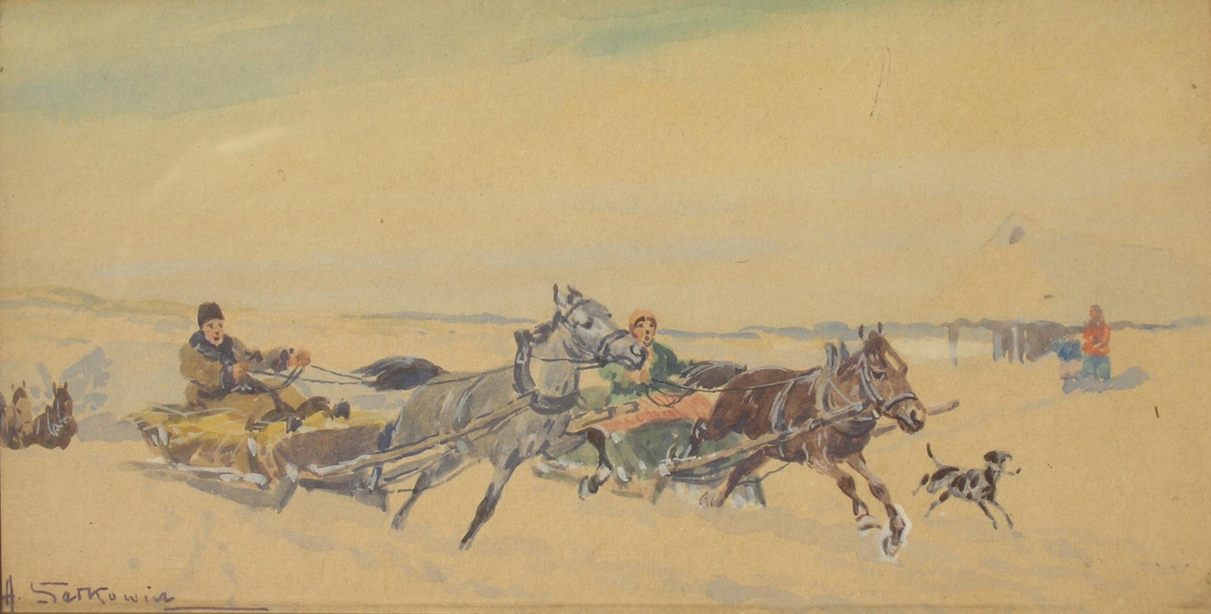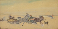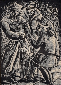 Scena sporu Rejenta z Asesorem o Kusego i Sokoła [psy–charty] opisaną w II Księdze Pana Tadeusza Adama Mickiewicza