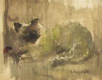 Alfons KARPIŃSKI ,Kot , akwarela, papier, 24,5 x 30,5 cm