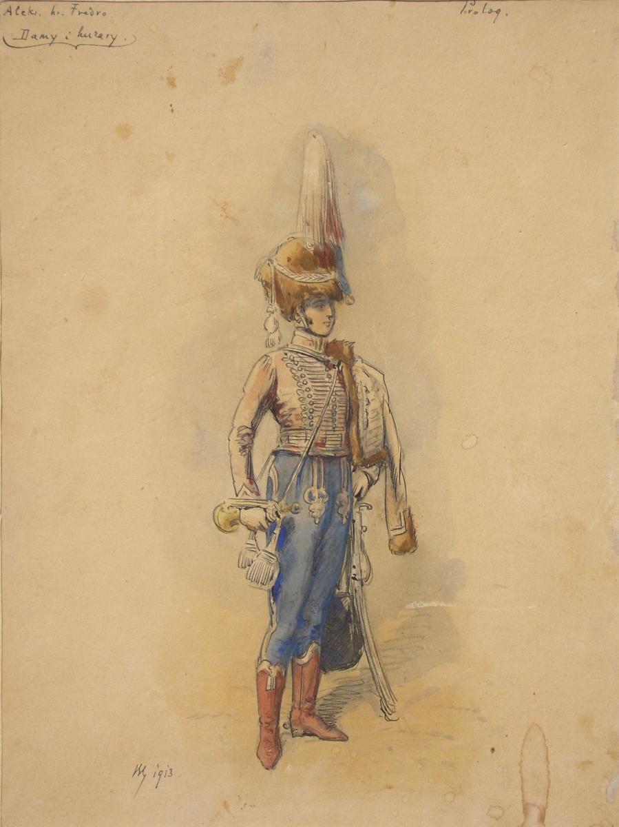 Projekt kostiumu do dramatu "Damy i Huzary", 1913