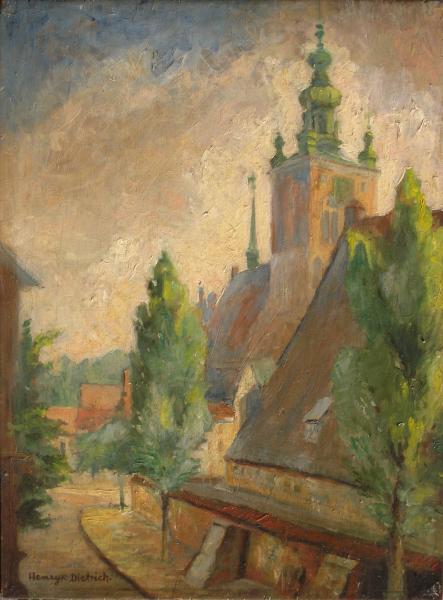 Henryk Dietrich uczył się w krakowskiej Akademii Sztuk Pięknych w latach od 1918 do 1921 u Jacka Malczewskiego, Józefa Mehofera i Wojciecha Weissa. Studiował również we Włoszech i w Paryżu. Po powrocie do kraju uczył rysunku i malarstwa w Równem. Wystawiał głównie w krakowskim Towarzystwie Przyjaciół Sztuk Pięknych oraz w Salonach Instytutu Propagandy Sztuki. Malował głównie pejzaże i widoki miejskie, głównie Krakowa.