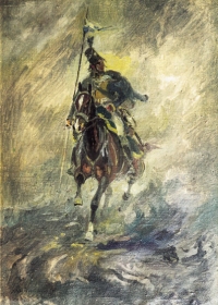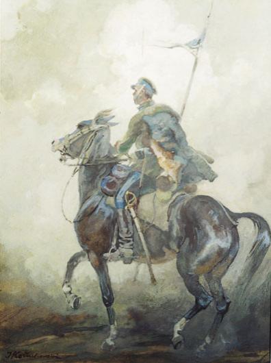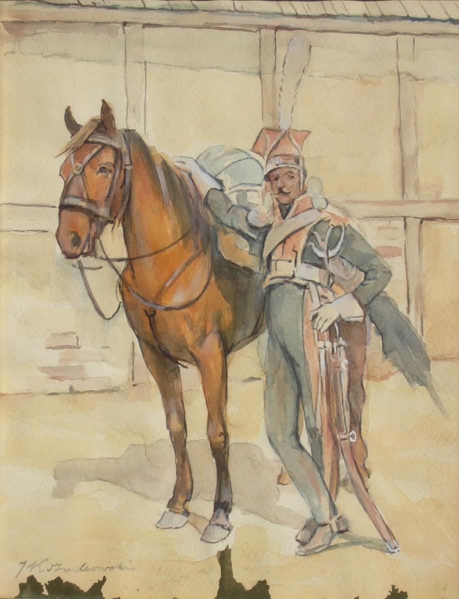 Jerzy Kożuchowski studiował malarstwo w krakowskiej Akademii Sztuk Pięknych w latach 1910 - 1914. Największy wpływ w okresie studiów na jego malarstwo wywarł Wojciech Kossak. W latach 1917 - 1918 kontynuował naukę w Warszawie w Szkole Sztuk Pięknych. Odbył kilka zagranicznych podróży, między innymi do Francji i Wielkiej Brytanii w latach 1921 - 1924. Malował głównie sceny batalistyczne, czasami również pejzaże. Używał najchętniej akwareli, ale sięgał również po farby olejne. Wystawiał swoje prace w towarzystwie Zachęty Sztuk Pięknych w latach 1912 -1939, w 1924 roku miał wystawę indywidualną w Salonie Garlińskiego.