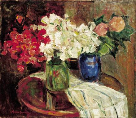 Aleksander AUGUSTYNOWICZ ,Kwiaty na stoliku , olej, płótno, 55 x 65 cm