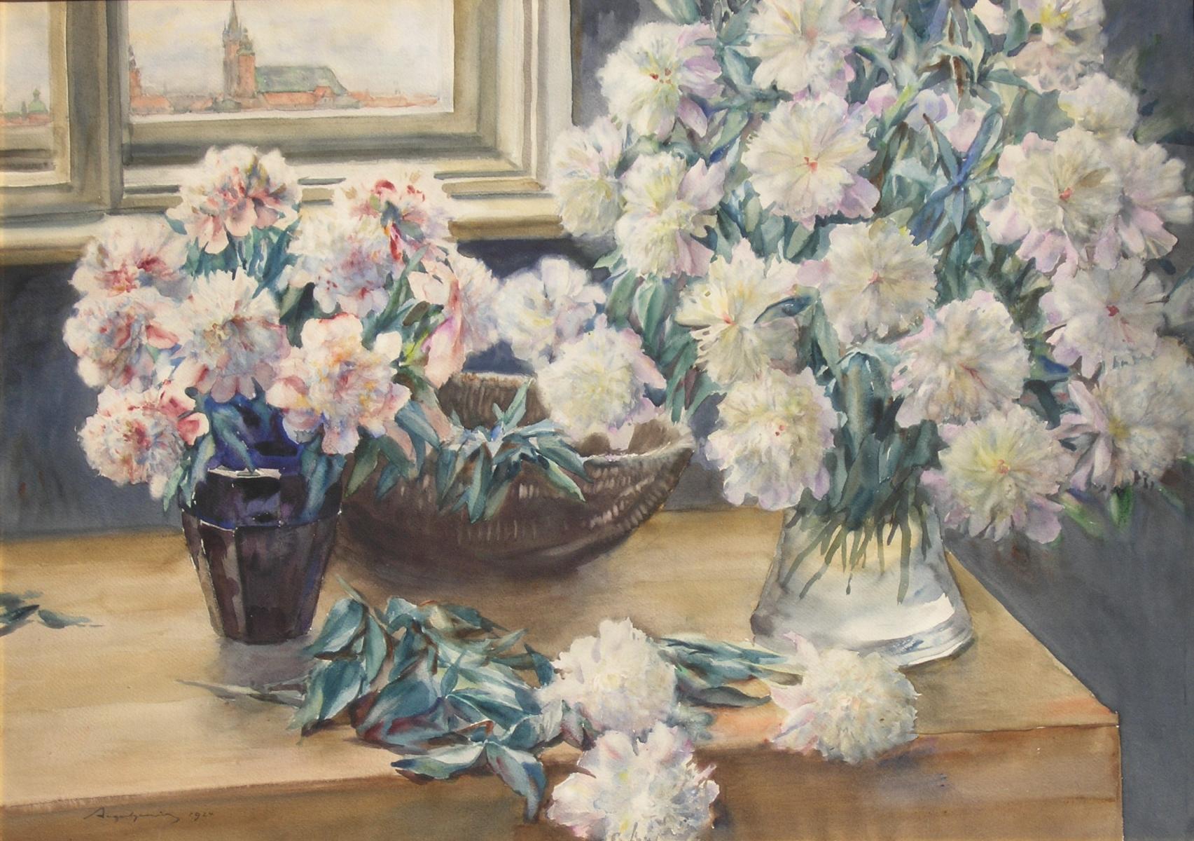 Aleksander AUGUSTYNOWICZ ,Peonie, 1924 , akwarela, karton, 78 x 105 cm
