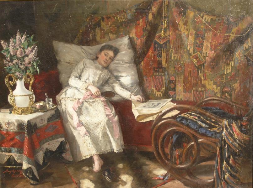 Aleksander AUGUSTYNOWICZ ,Odpoczynek, 1890, olej, płótno, 69.5 x 92,5 cm
